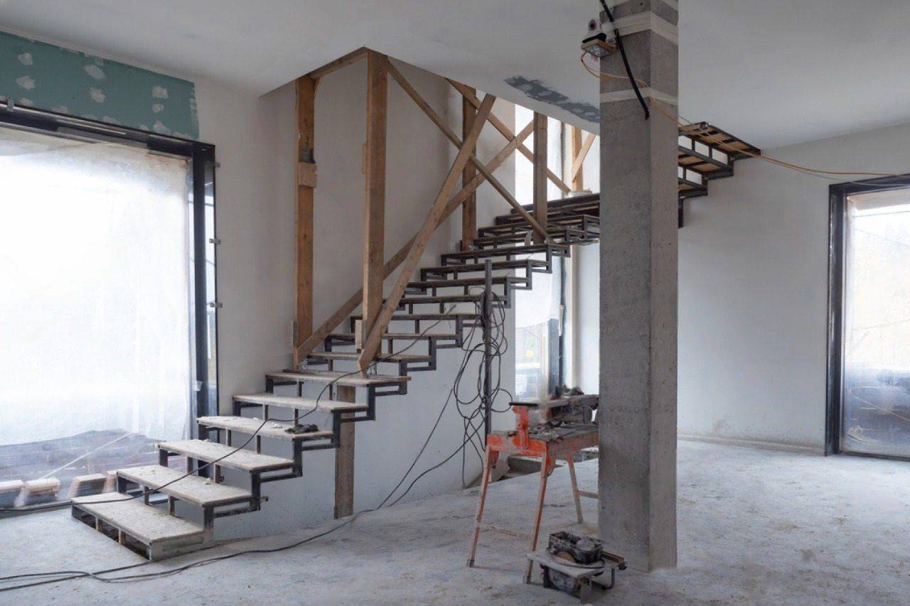Установка прямой лестницы на косоурах